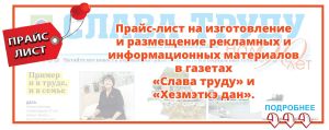 ПРАЙС-ЛИСТ НА ИЗГОТОВЛЕНИЕ И РАЗМЕЩЕНИЕ РЕКЛАМНЫХ И ИНФОРМАЦИОННЫХ МАТЕРИАЛОВ В ГАЗЕТАХ «СЛАВА ТРУДУ» и «ХЕЗМЭТКЭ ДАН».