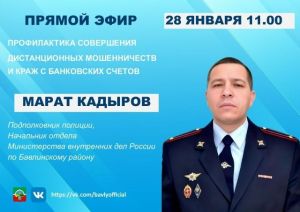 Начальник МВД по Бавлинскому району в прямом эфире расскажет о мерах защиты от мошенников